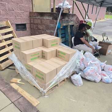 Our volunteers help package and deliver food boxes to the cars at the drive-thru food pantry. Our volunteers work tirelessly to help make the drive-thru food pantry possible. We appreciate them so much!